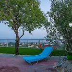 Gasten kunnen genieten van een kust uitzicht op de zee vanaf een terras in deze 2-slaapkamer Le Paradis D' Elli Lakíthra villa, op 3 km afstand van het Kasteel van Agios Georgios.